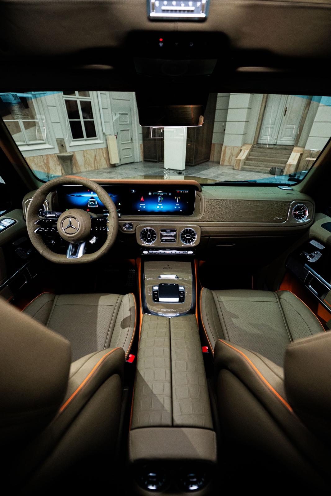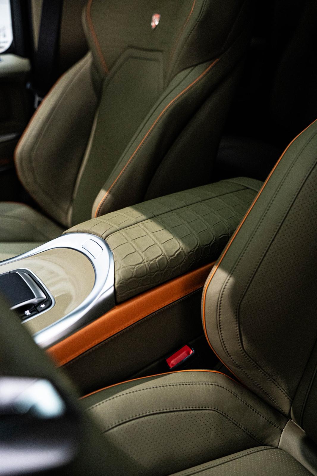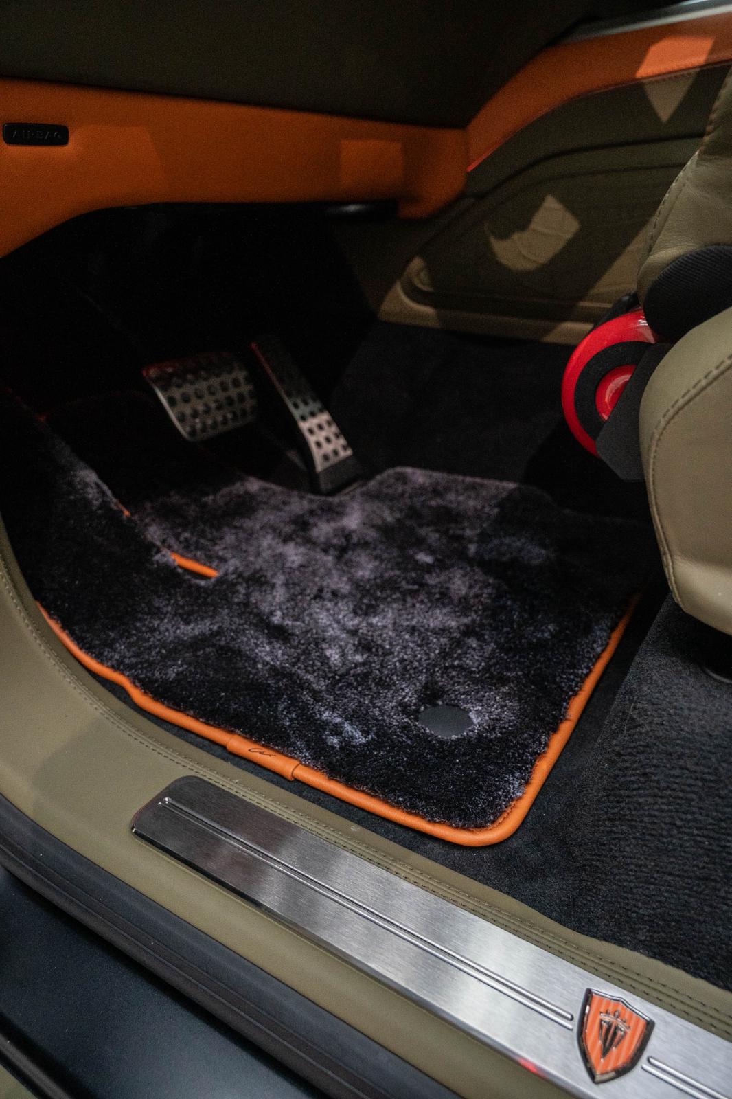 Every surface is considered as part of a whole — from the central tunnel and steering wheel to the headliner, pillars, and bespoke floor mats.