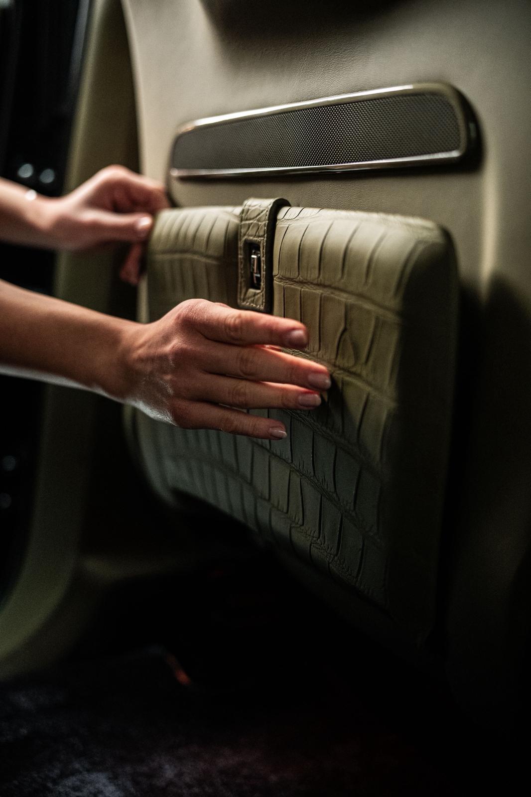 Seat pockets are redesigned and enriched with discreet closures. The central tunnel and armrest are built anew, as is the steering wheel with its full set of components.