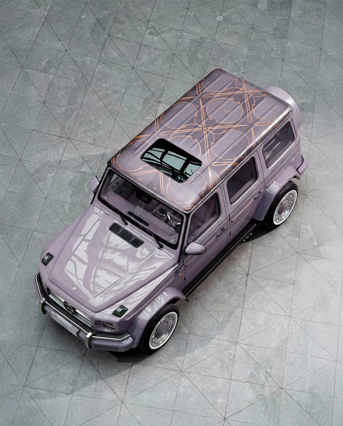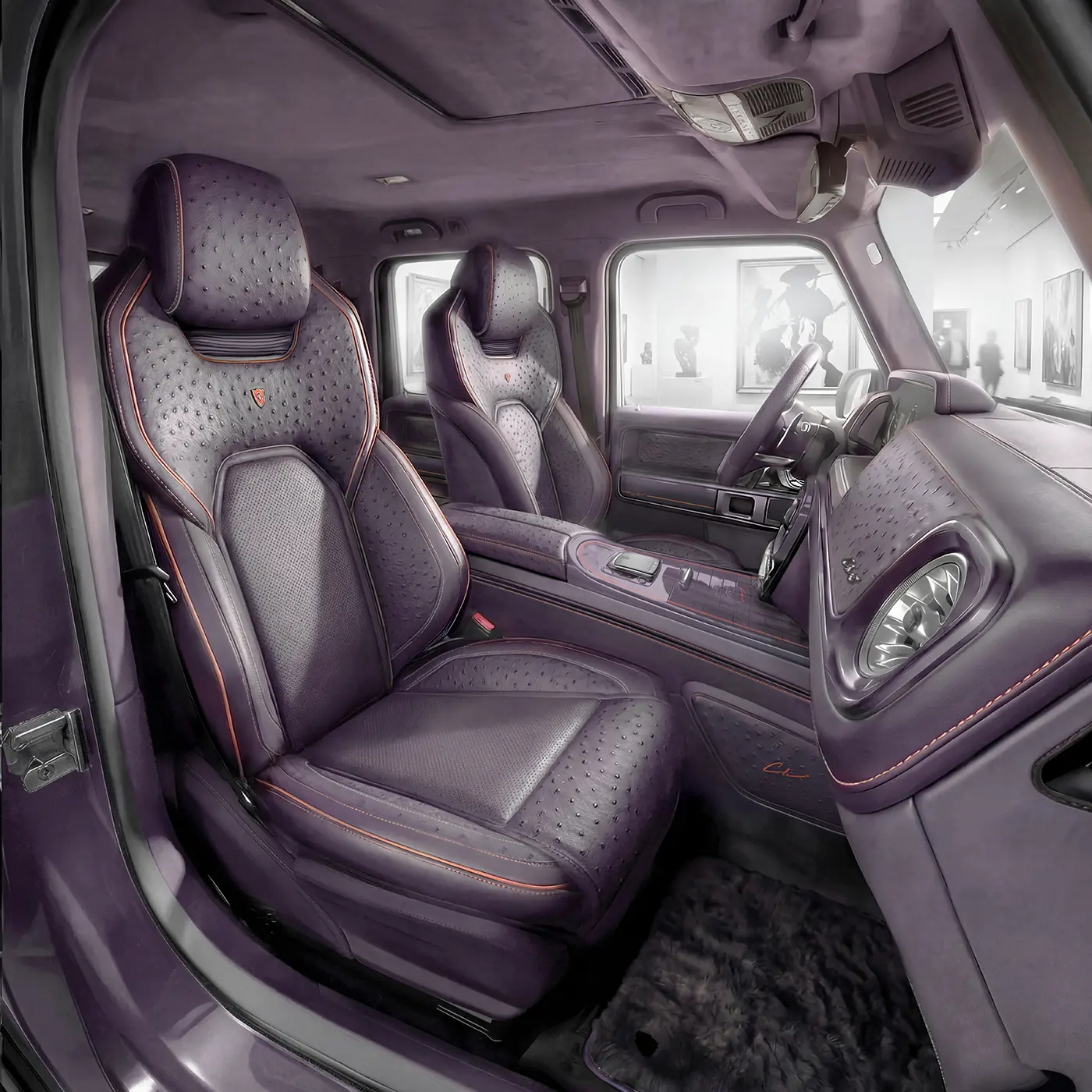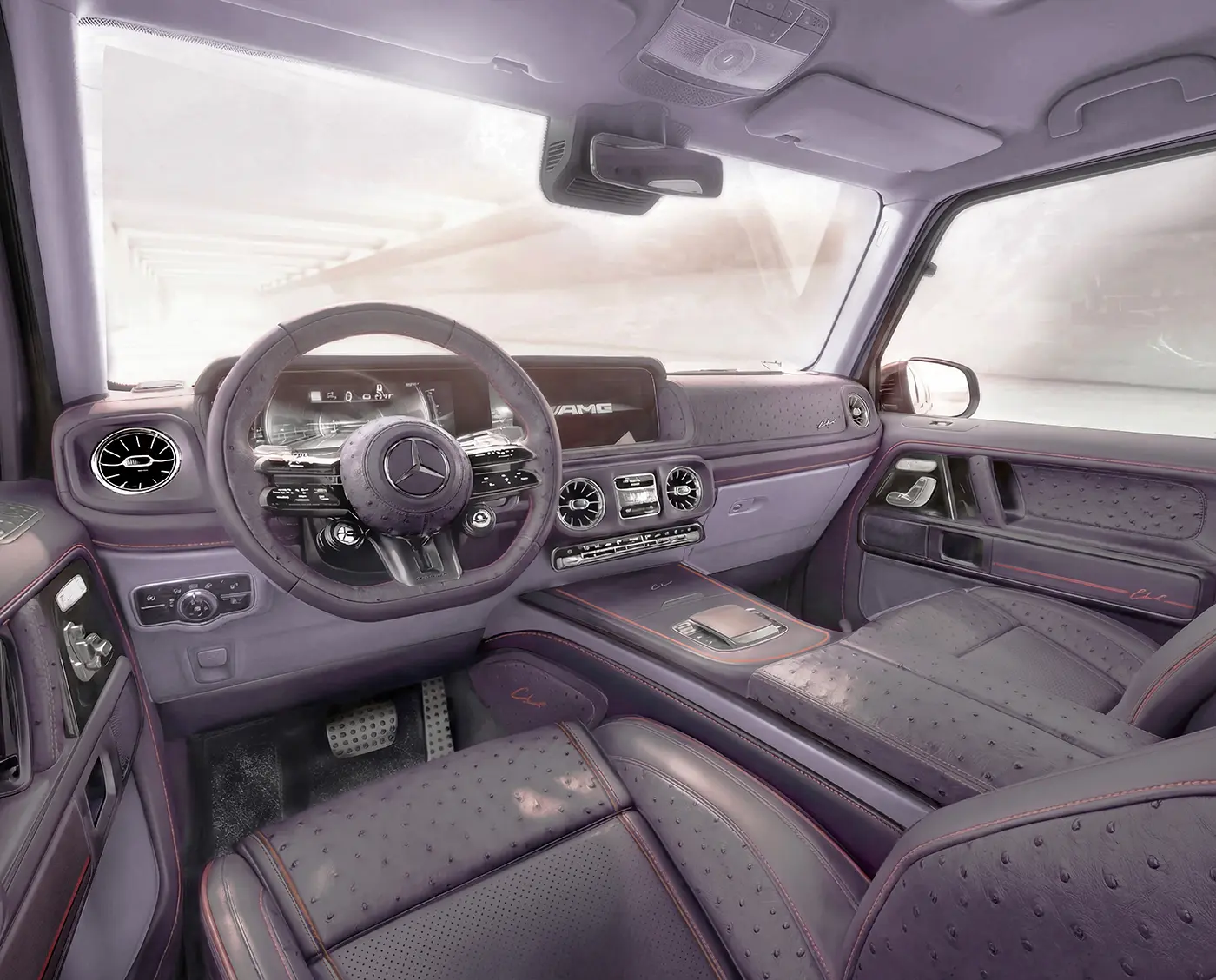 The fuchsia exterior, ostrich leather interior, and copper accents create a G-Class that is expressive yet composed, striking yet refined.