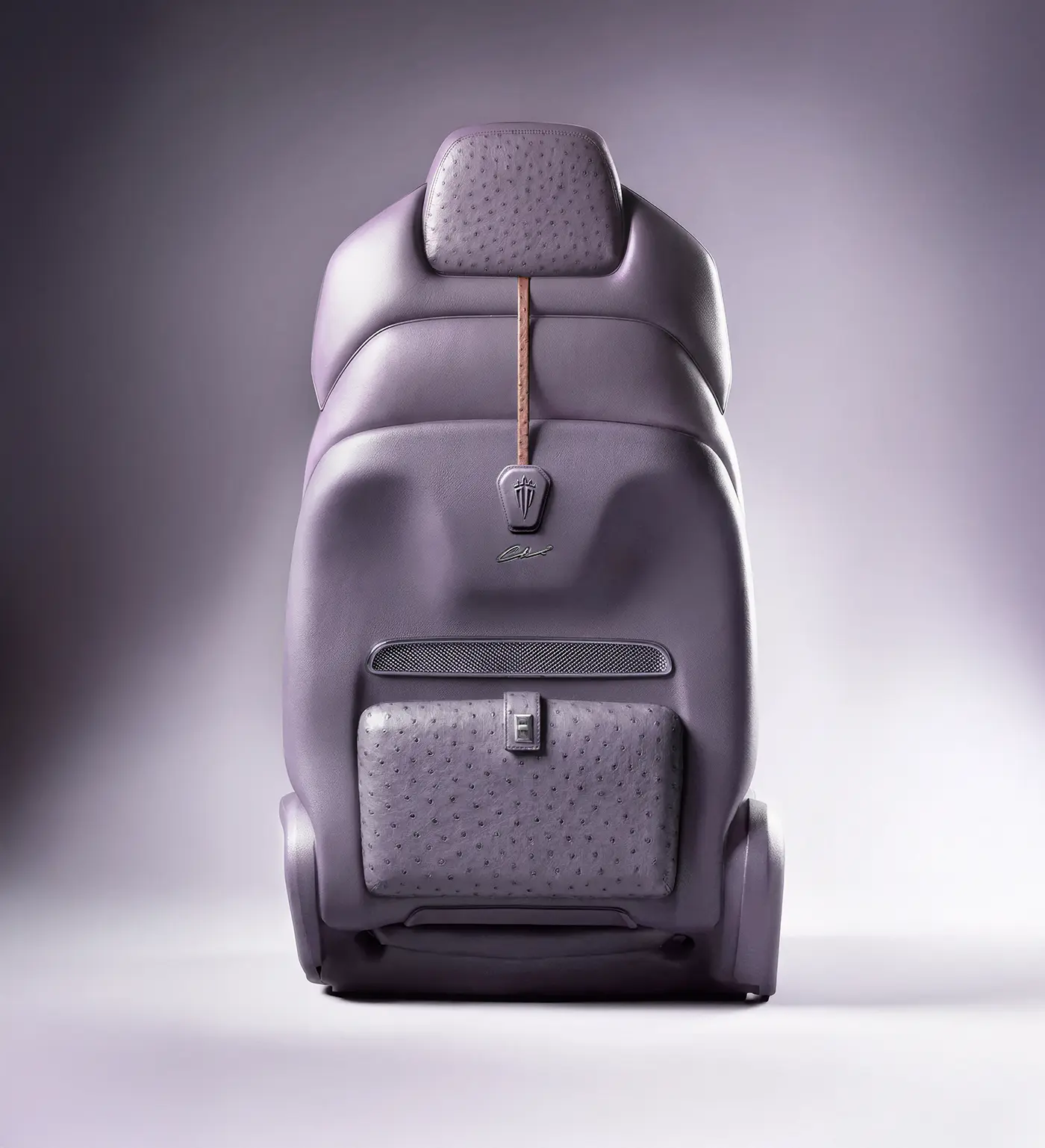 Inside, the cabin is defined by rare ostrich leather, chosen for its distinctive texture and natural depth. Seats designed exclusively for the Icons collection are upholstered in this leather, combining sculptural form with tactile richness.