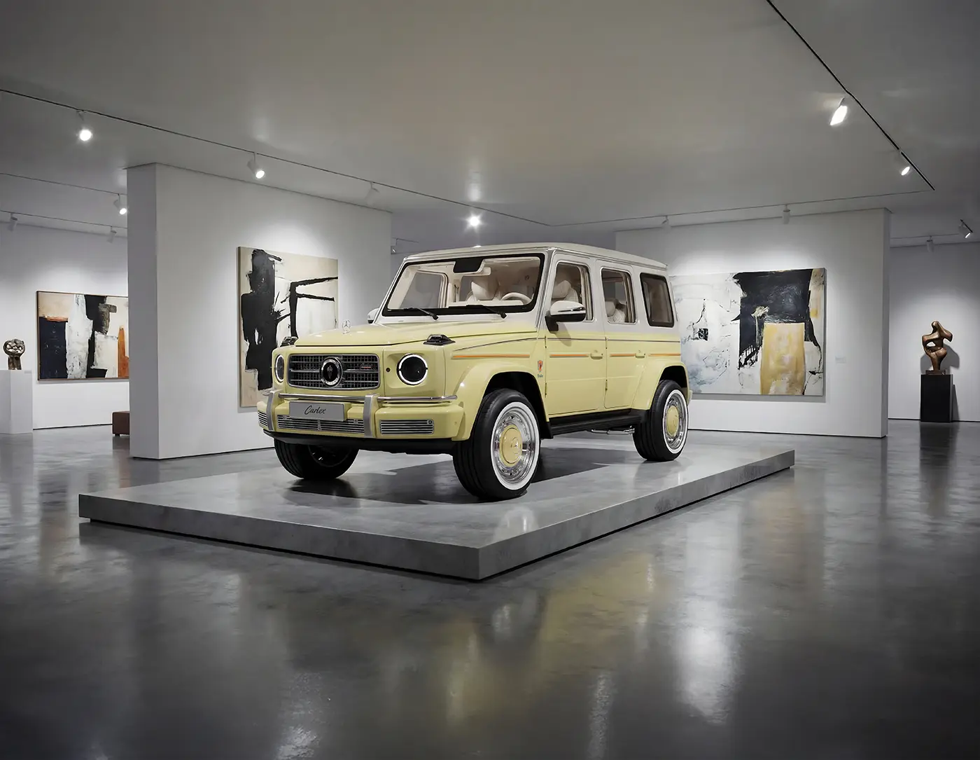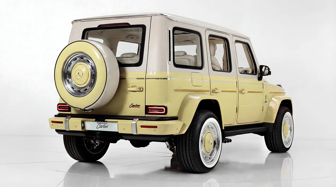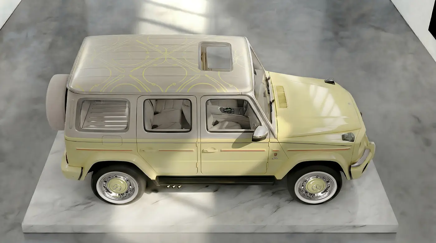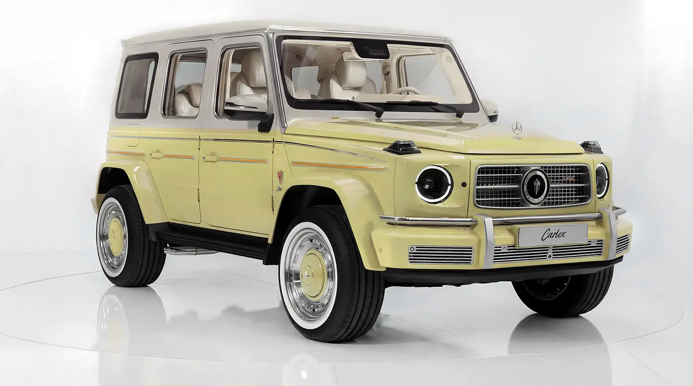 This version of the Carlex Icons explores a brighter, more contemporary expression of the G-Class. It combines the vitality of lime with the softness of beige and the natural richness of ostrich leather.