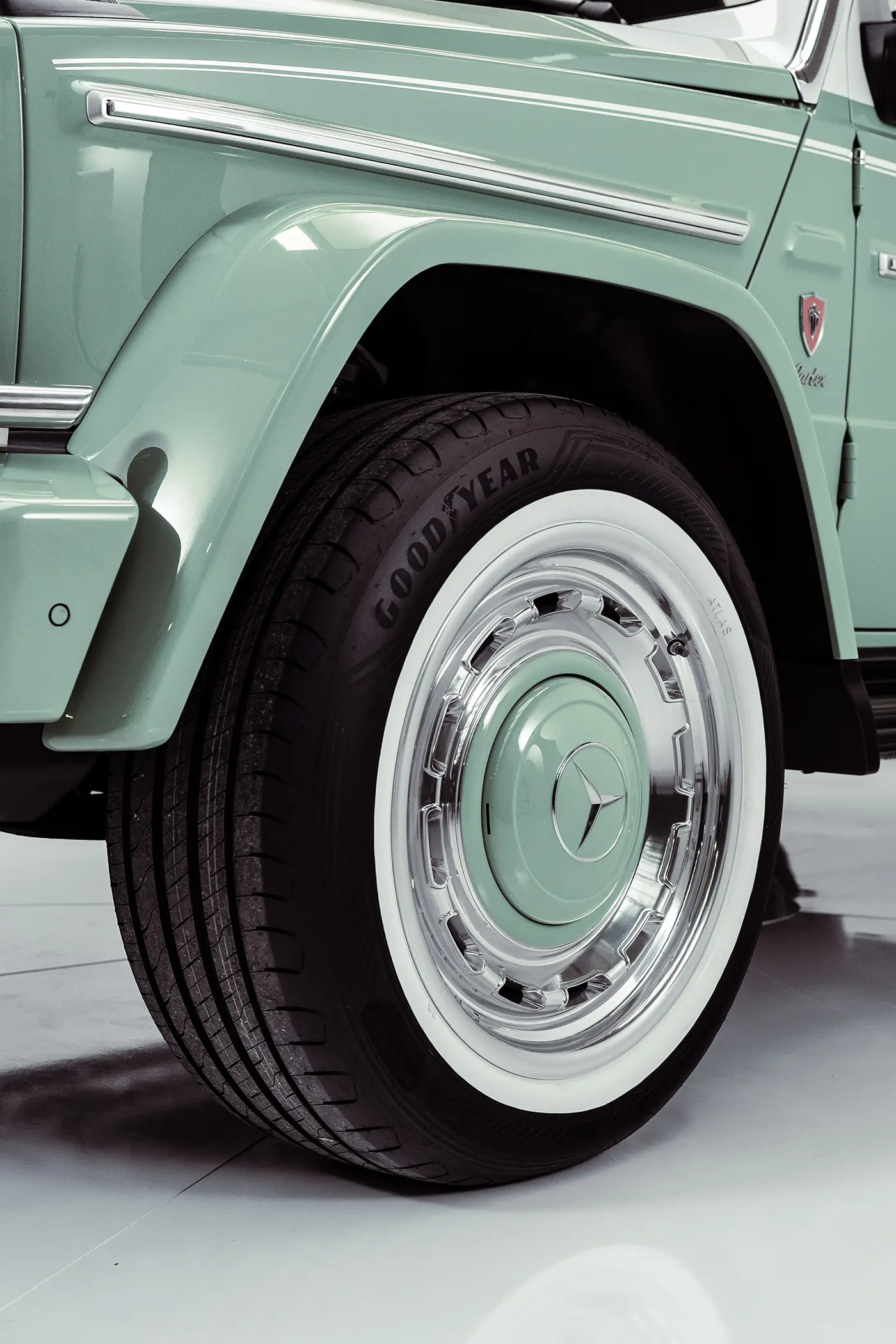 A collage featuring a turquoise door, a vintage G-Class parked nearby, a silver watch with a turquoise face, two women in colorful headscarves, a turquoise scooter and handbag, sketches, and a seaside scene.