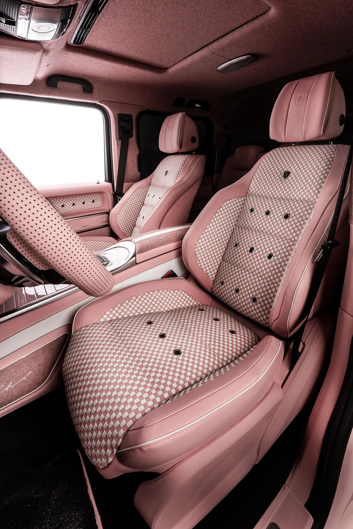 Inside the Carlex Rose Vintage, every element is carefully crafted to perfection. With Nappa pink hue leather, bespoke stitching, and refined finishes, the interior embodies timeless feminine elegance and exceptional craftsmanship.