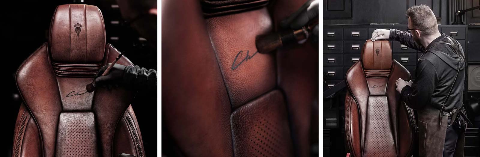 The definition of “The Summit of Everything” does not lie in the price of the material but in the rigor of the process: hand-selection, cutting, conditioning, gluing, stitching, controlling. Hundreds of hours turn leather into an artefact. This is our standard. Market examples illustrate the challenge but are never our goal. Bentley Mulliner can book-match veneer like a mirror; Pagani treats carbon fibre like haute couture fabric; Rolls-Royce paints a coachline with a single brushstroke.